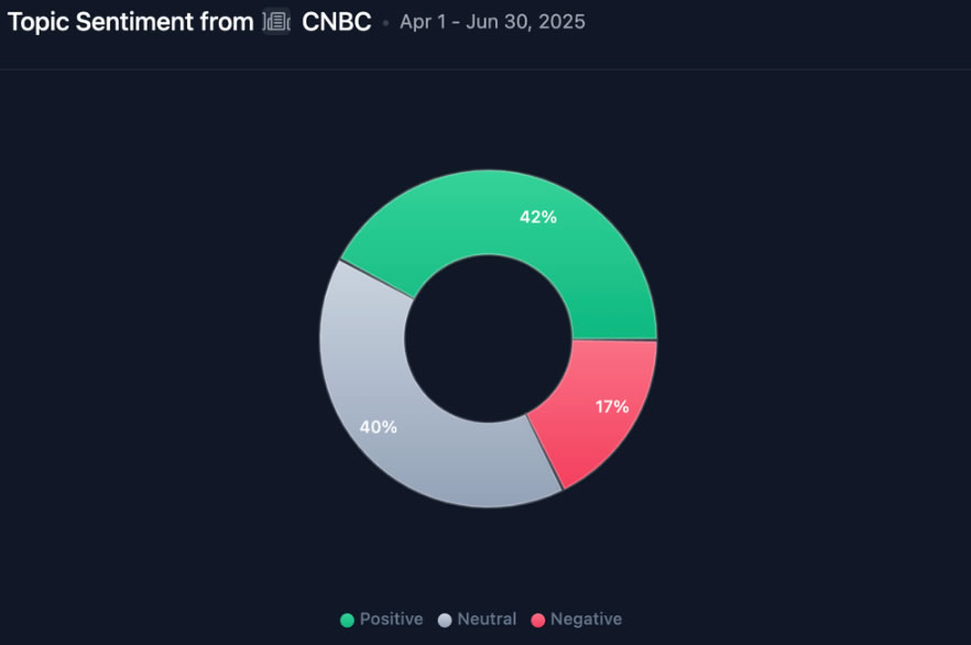 So veröffentlichte CNBC allein 141 Artikel über Bitcoin, mit einem Schwerpunkt auf Marktanalyse und die Rolle von Banken und Finanzinstitutionen. Fox News wählte häufiger Themen wie rechtliche Angelegenheiten und Cybersicherheit.