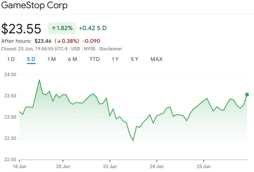 Wenn GameStop dieses Geld für den Kauf von Bitcoin verwendet, könnte es fast seinen Bestand von 4.710 Stücken verdoppeln. Über die letzten fünf Tage konnte die GameStop-Aktie sich etwas erholen und einen Anstieg von 1,82% verzeichnen.