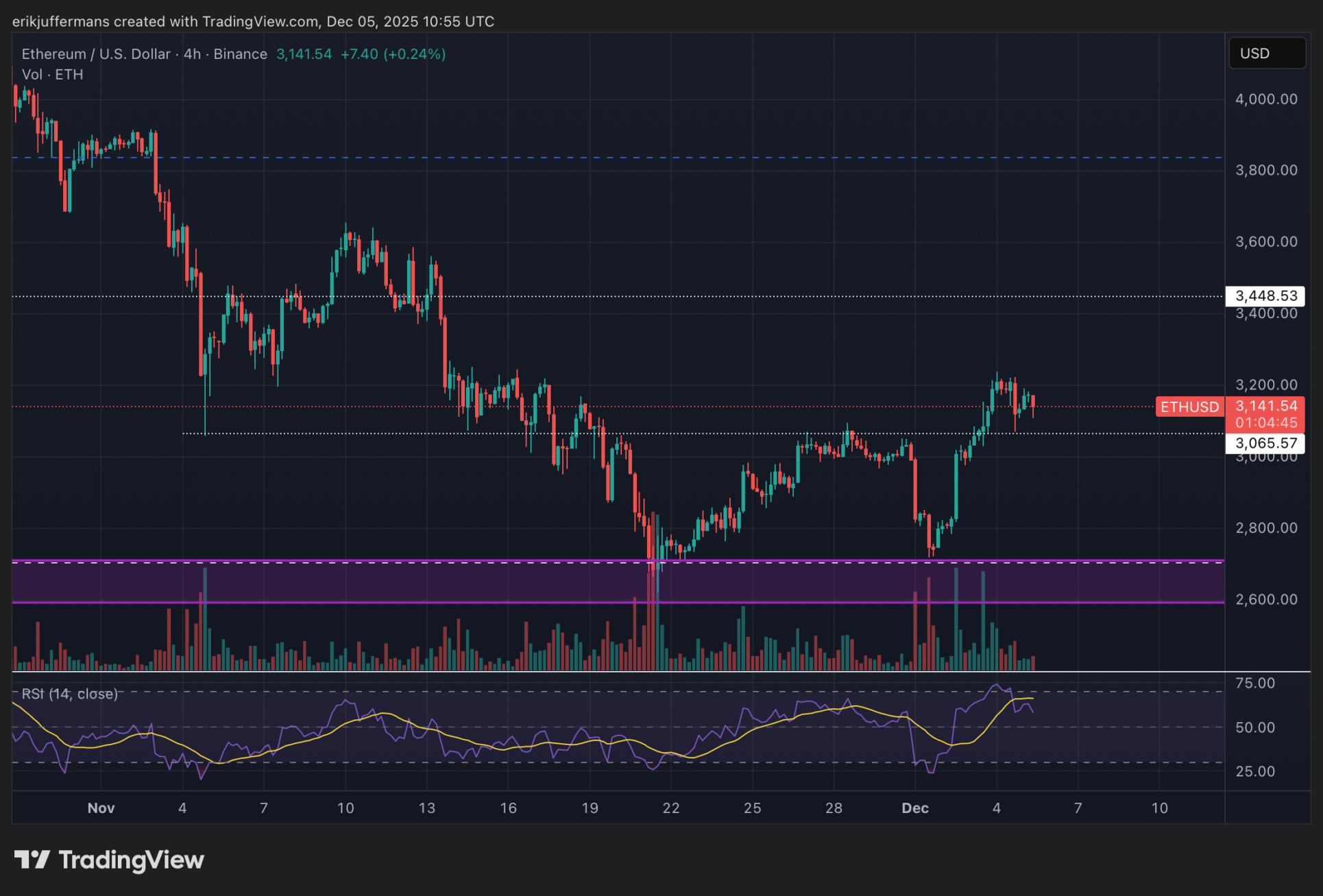 Bei Ethereum (ETH) sehen wir eine ähnliche Situation. Nach einer beeindruckenden Rallye, bei der der Kurs das Niveau von 3.000 Dollar zurückeroberte, kommt der Kurs nun wieder zur Ruhe. Mit dem jüngsten Anstieg verzeichnete der Kurs ein höheres Hoch und scheint somit einen neuen Aufwärtstrend begonnen zu haben. ETH steht derzeit bei 3.125 Dollar, was mehr als 2 Prozent niedriger ist als gestern.