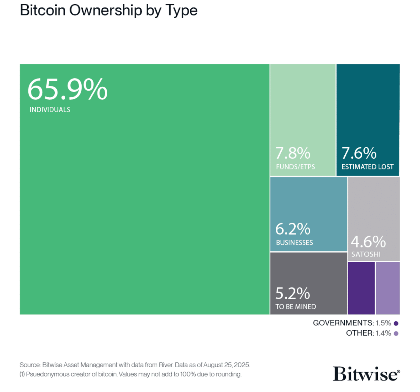 Laut dem Vermögensverwalter Bitwise entspricht dies jedoch nur 1,5 Prozent des gesamten BTC-Angebots. Zum Vergleich: Staaten besitzen rund 17 Prozent der weltweiten Goldreserven. BTC befindet sich nach Einschätzung von Bitwise damit noch in einer frühen Phase der staatlichen Adoption.