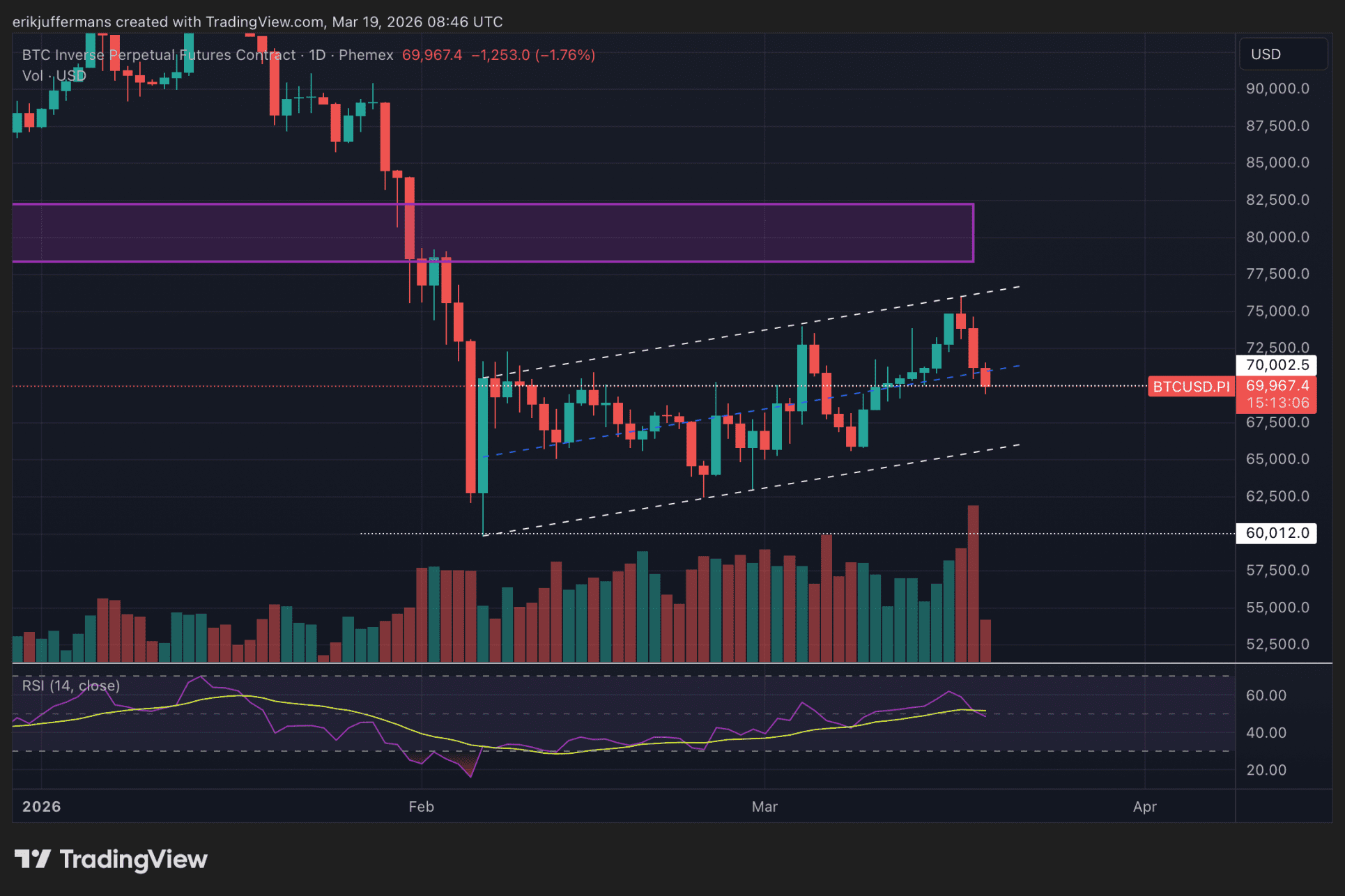 Das hat sich auch diesmal bestätigt. Die Abweisung bei 76.000 USD führte innerhalb von drei Tagen zu einem Rückgang von fast 8%. Der Kurs fiel auf die Zone zwischen 69.000 und 70.000 USD, ein sowohl technisch als auch psychologisch bedeutendes Niveau.