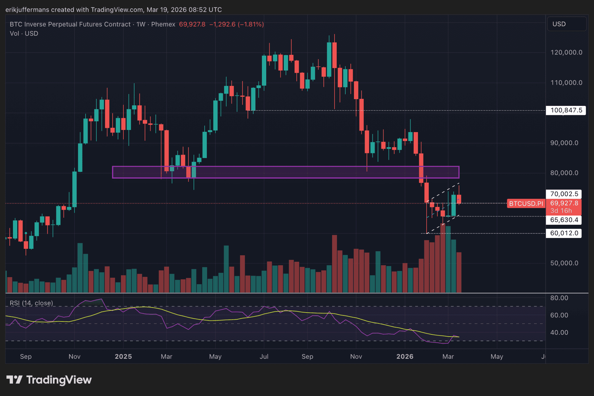 Doch sollte Bitcoin auf Wochenbasis unter 66.000 USD schließen, ändert sich das Bild erheblich. Dann eröffnet sich ein bärisches Szenario mit Raum für weitere Rückgänge. So weit ist es jedoch noch nicht.