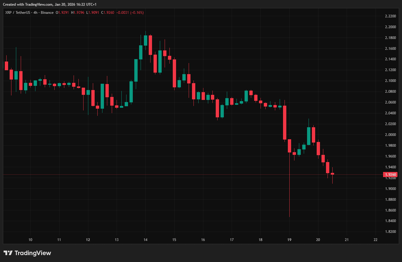 Der Rückgang von XRP hängt nicht nur mit dem Kryptomarkt zusammen, sondern auch mit geopolitischen Unruhen. Donald Trump erklärte kürzlich, dass er Grönland um jeden Preis in das US-Territorium aufnehmen will. Kurz darauf führten einige EU-Länder eine militärische Mission in der Region durch, was die Spannungen zwischen den beiden Blöcken weiter verschärfte.