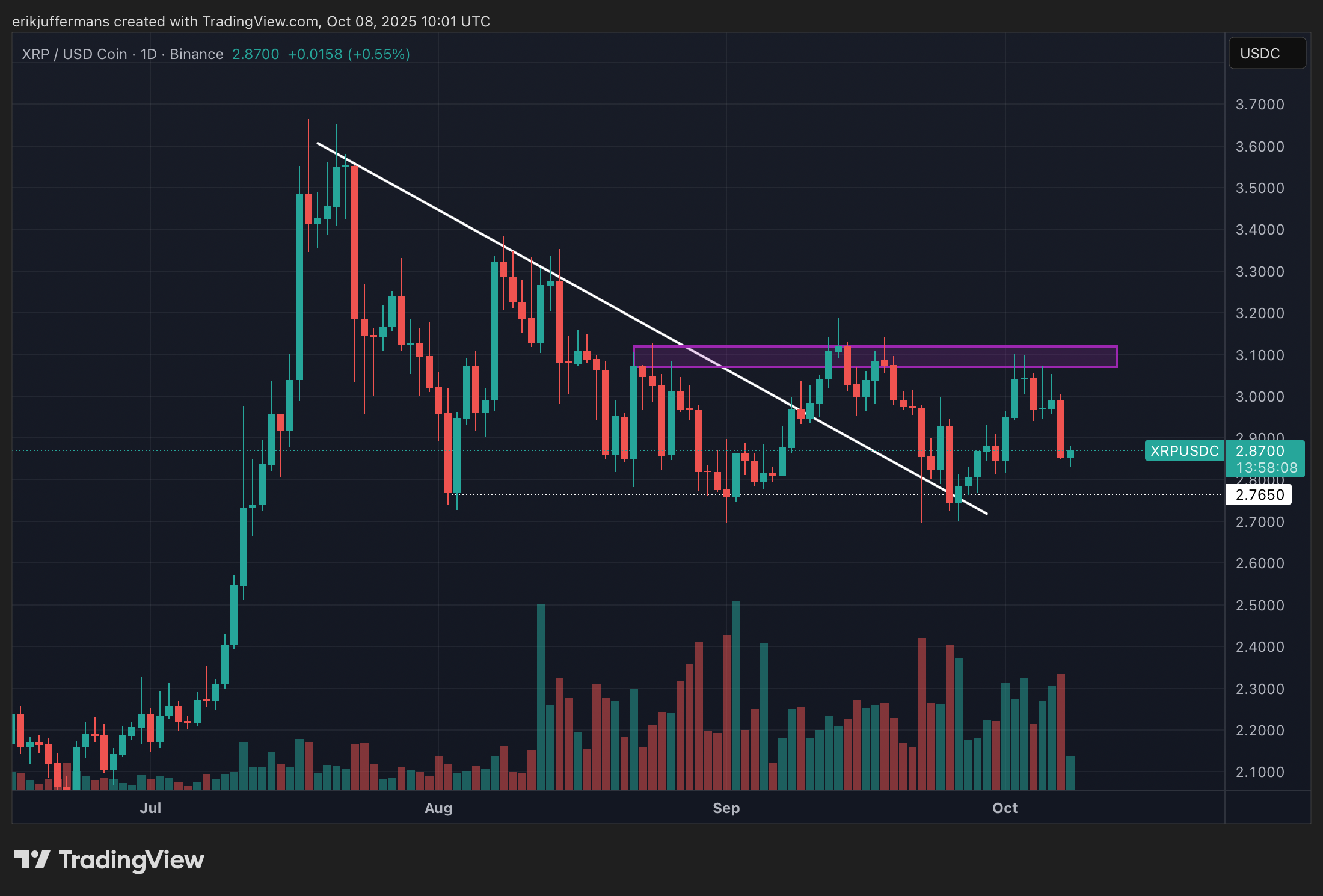 Das Handelsvolumen von XRP lag fast siebenmal über dem Durchschnitt, was auf starke Liquidationswellen hindeutet. Insgesamt wurden laut Marktdaten Long-Positionen im Wert von über 500 Millionen US-Dollar liquidiert. Wie erwähnt, fand der Kurs um 2,85 US-Dollar Unterstützung und scheint sich auf diesem Niveau seitwärts zu konsolidieren.