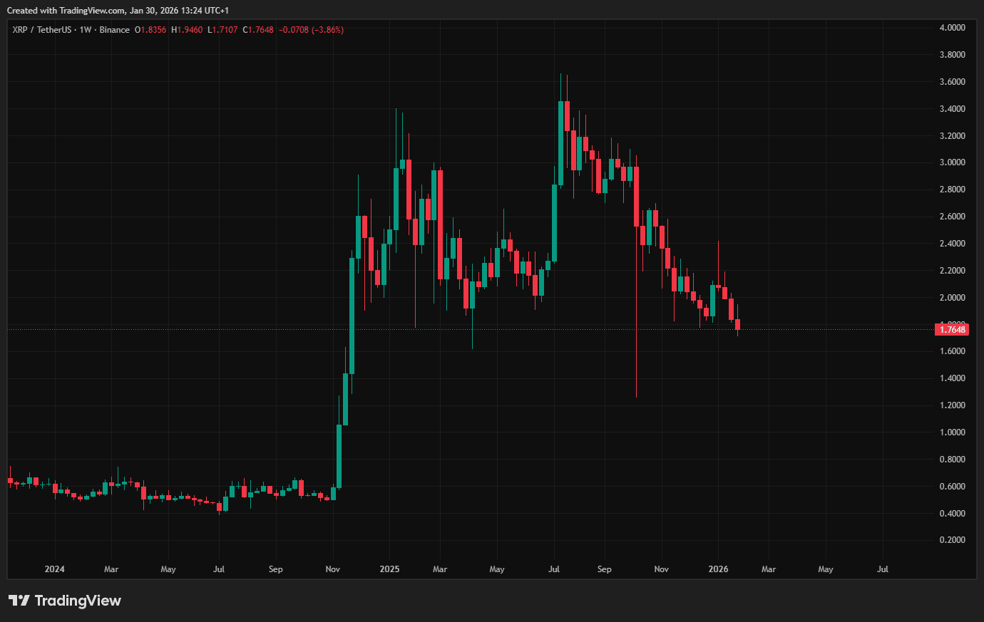Der Abfluss fällt mit einem starken Kursrückgang von XRP selbst zusammen. In den letzten 24 Stunden hat die Coin 8,1 Prozent an Wert verloren. Zum Zeitpunkt des Schreibens liegt der XRP-Kurs bei 1,75 Dollar.