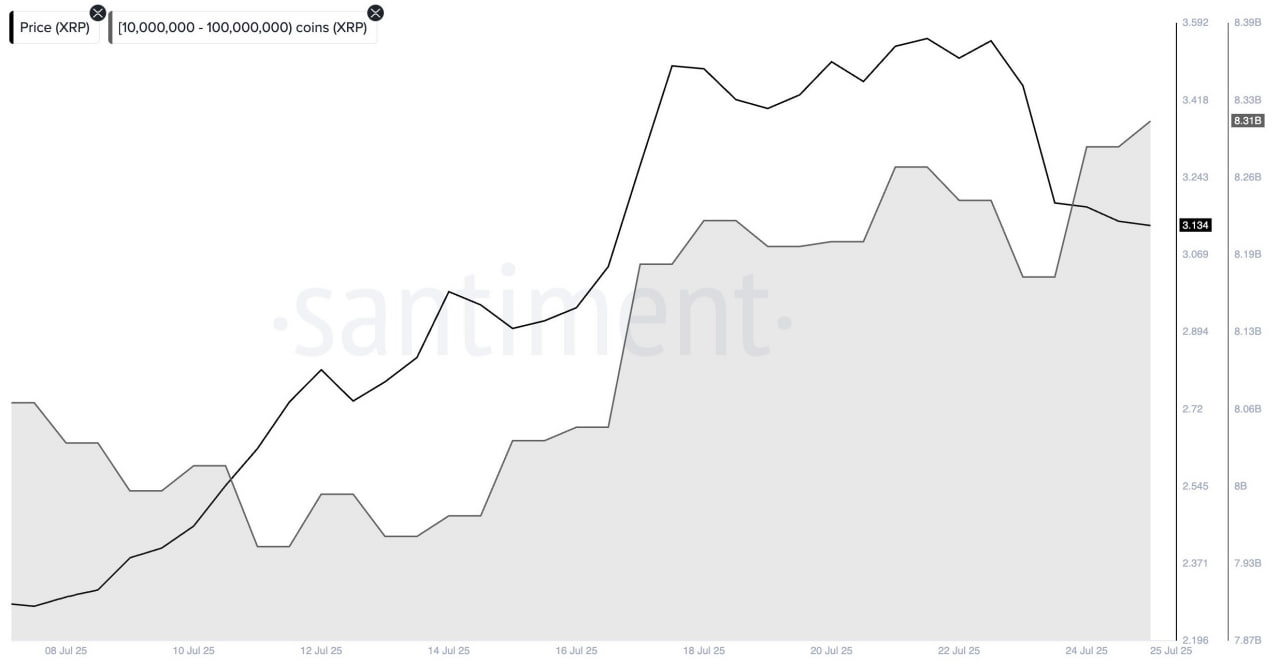 Letzte Woche fiel XRP kurz unter 3 Dollar, nachdem bekannt wurde, dass Mitgründer Larsen massenhaft Tokens verkaufte. Doch das war für große Investoren – die sogenannten Whales – kein Grund zu verkaufen. Im Gegenteil: sie kauften dazu.