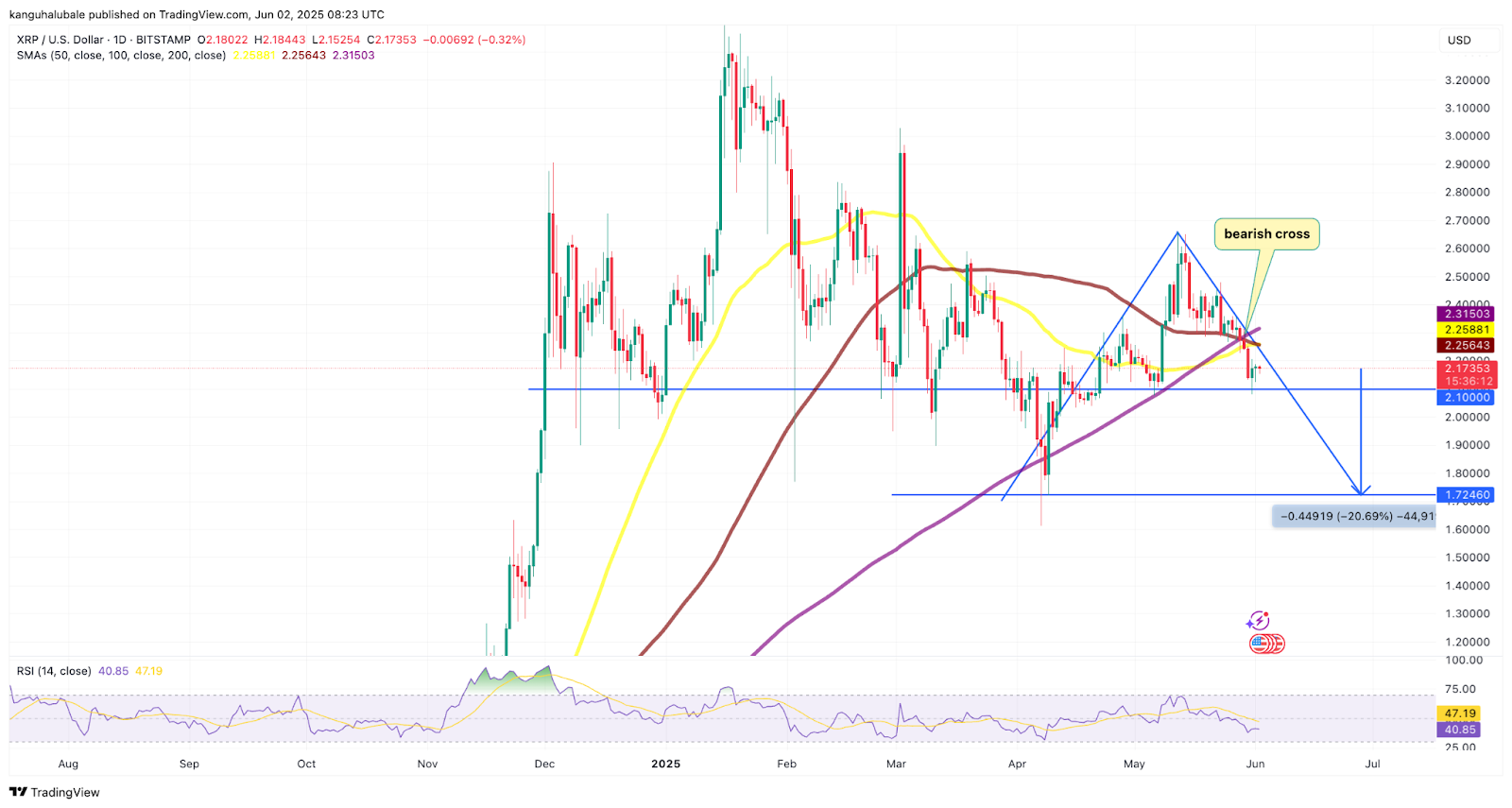 Im Mai handelte der XRP Kurs noch auf einem lokalen Höhepunkt von 2,65 Dollar. Mittlerweile liegt der Kurs jedoch eine solide 18% niedriger, und eine Zusammenkunft von negativen Umständen könnte XRP sogar auf 1,70 Dollar bringen.