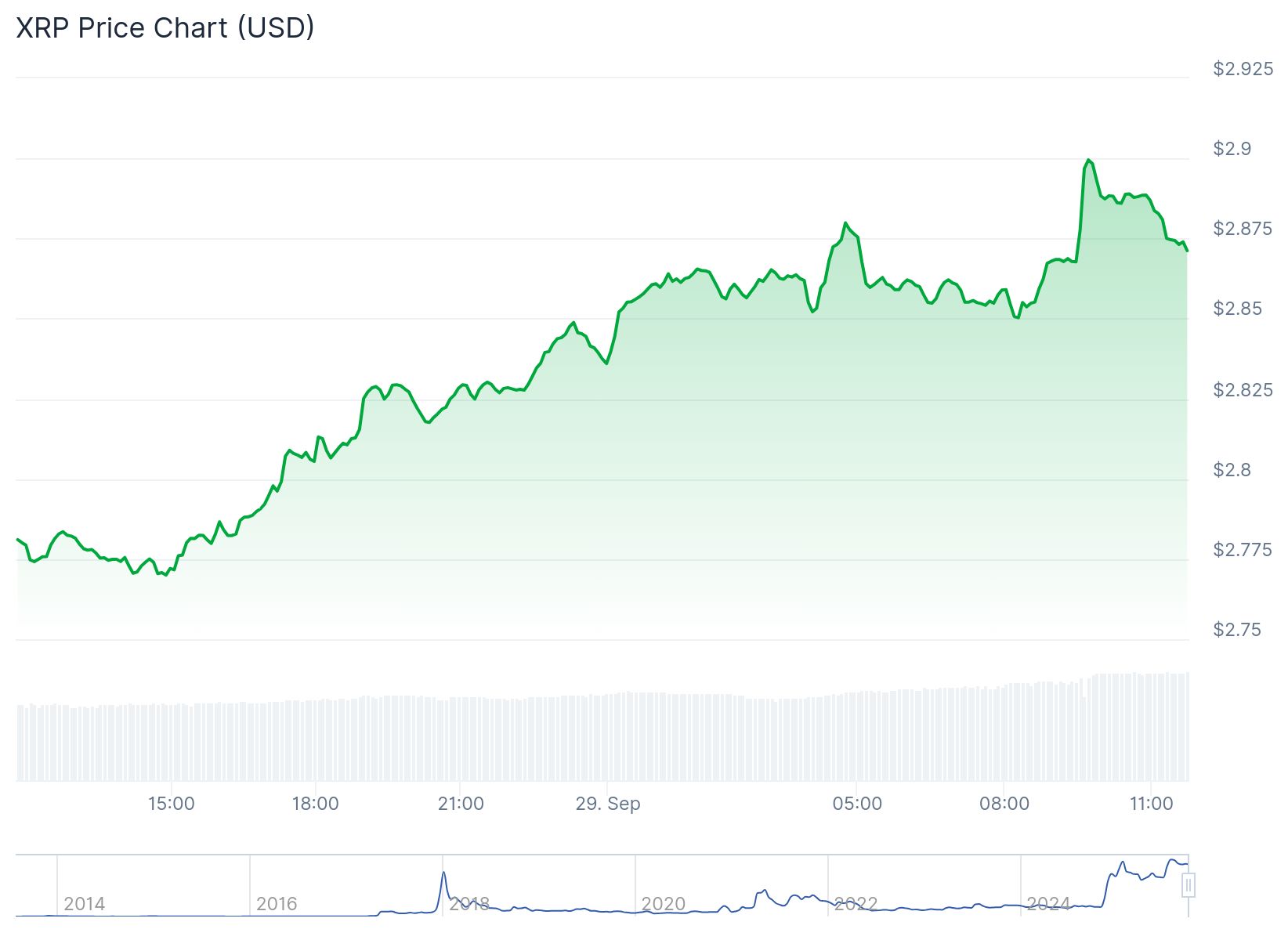 In den letzten 24 Stunden zeigte der XRP-Kurs eine bemerkenswerte Erholung. Die digitale Währung stieg um dreieinhalb Prozent und handelt derzeit bei etwa 2,88 Dollar. Damit bleibt XRP seit Monaten in derselben Preisspanne gefangen: Es fällt nicht unter 2,70 Dollar, schafft es aber auch nicht, überzeugend den Widerstand bei etwa 3,10 Dollar zu durchbrechen. Gemäß der Analyse von StephIsCrypto ist es wahrscheinlich, dass diese seitwärtige Bewegung auch im Oktober anhält.