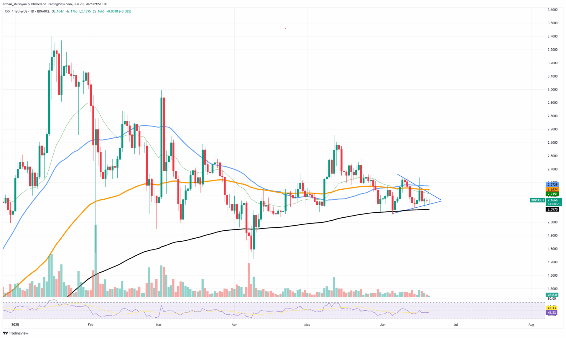 Der Kurs von XRP kriecht schon seit Wochen durch ein symmetrisches Dreieck – ein klassisches Muster, das oft in einer starken Bewegung mündet. Der Kurs prallte kürzlich von der Unterseite dieses Musters nach oben ab. Das deutet darauf hin, dass Käufer sich bei Unterstützungspunkten regen.